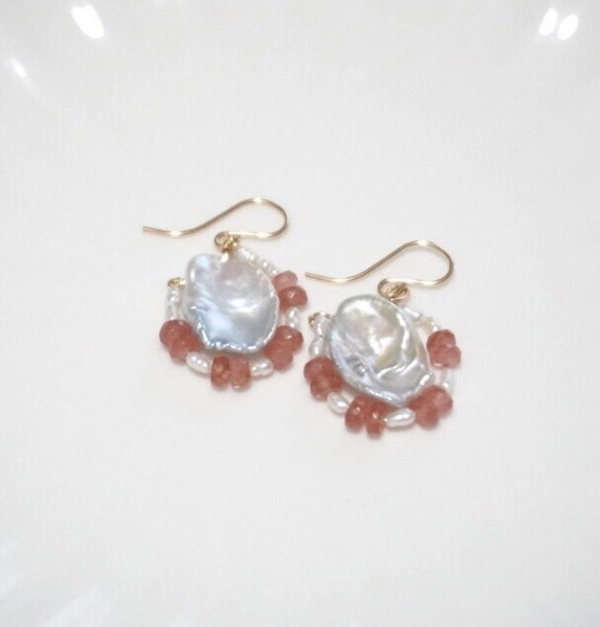こちらは花びらの様な大きい淡水パールが包まれているデザインです。